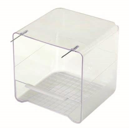 Bañera Exterior Reggio totalmente transparente con gancho de alambre para colgar idónea para que nuestros pájaros se den un buen baño y mantener así una buena higiene
