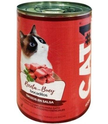 Alimento húmedo para gatos adultos de cualquier raza. Bocaditos en salsa. Receta de buey y cereales. Ideal para complementar a la alimentación diaria del felino. Alta palatabilidad. Aporte de hidratación.